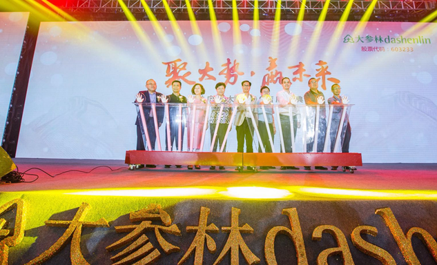 PG药业集团董事长刘景萍女士与大参林医药集团董事长柯云峰先生、中国医药商业协会执行会长付明仲女士等嘉宾共同开启了“聚大势•赢未来"大参林工商合作峰会的大幕。
