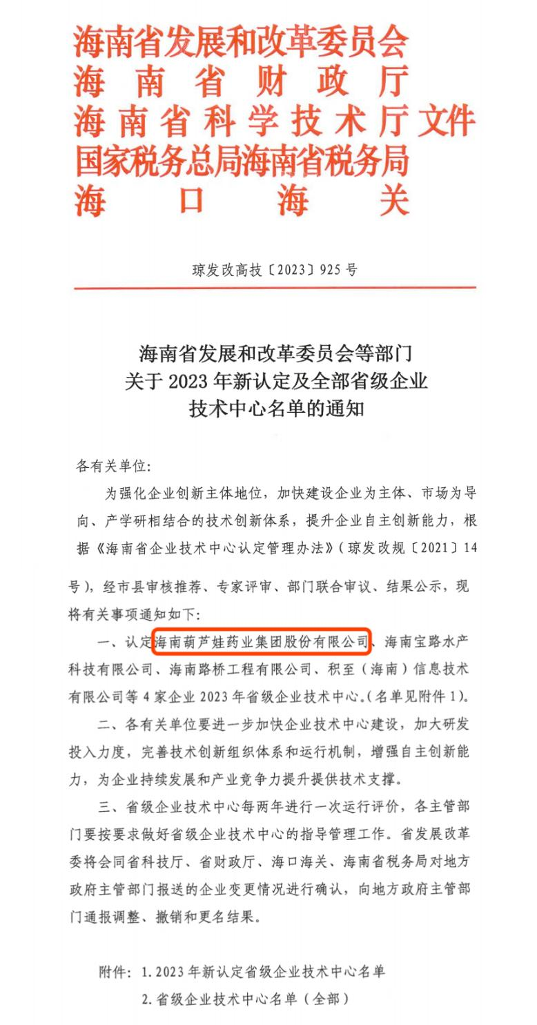 近日,海南省发改委等多部门联合公布了《关于2023年新认定及全部省级企业技术中心名单的通知》,其中,海南PG药业集团股份有限公司成功通过评审,被认定为省级企业技术中心,是本次获批的4家企业之一。