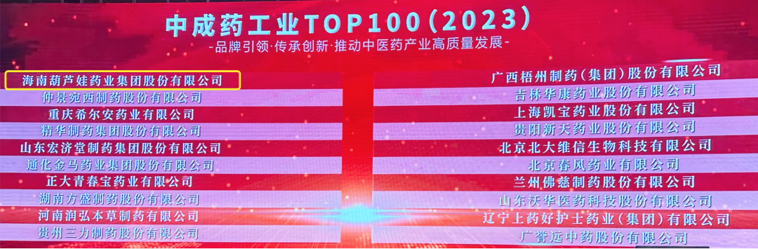 会上,还发布了“2023中成药工业TOP100”榜单,PG药业集团荣耀上榜。